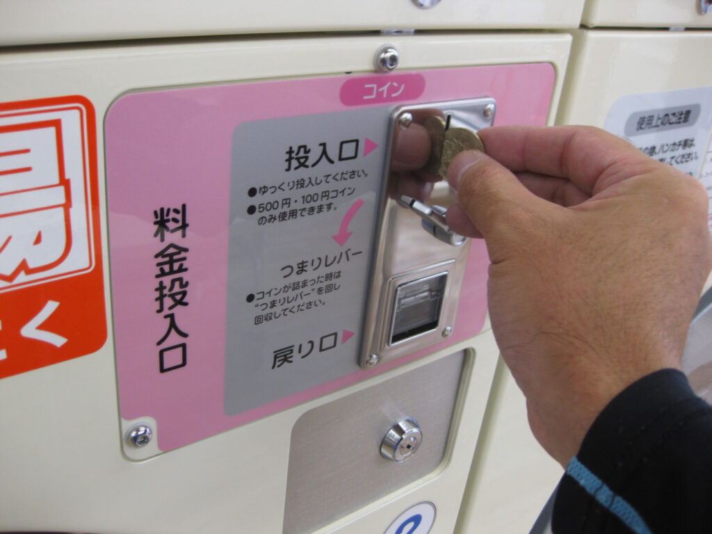 お金を入れる前にコース選択ボタンを押してください。コース選択ボタンを押しても戻ってくる場合は、コインが詰まっている可能性がありますので、つまりレバーを操作してください。