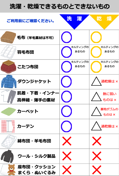 下記は目安です。実際に洗濯物を入れていただき、ドアのガラス面に表示されてます「少量コース」「標準コース」のラインも参考にしてください。パンパンに詰め込みますと、洗濯能力及び乾燥能力が悪くなりますのでご注意ください。